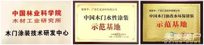 多年的开创探索,让汇龙赢得了“国家高新技术企业”称号,并继“木门涂装技术研发中心”之后被授予“中国木门油改水环保涂装环保示范基地”、“中国木门水性涂装示范基地”称号,这不仅是对汇龙的高度认可,也明确了汇龙对环保涂装的研发职责和推广义务,此后还必将鞭策着汇龙继续践行绿色涂装的技术创新和服务创新。