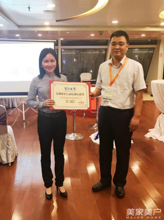 张仁江秘书长为冼绮薇女士颁发“中国定制家居特别贡献奖”
