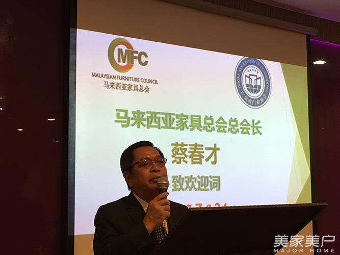 马来西亚家具总会总会长蔡春才在发言中说:“马来西亚总人口3170万人,华人是马来西亚的第二大民族。马来西亚的华人从商者居多,在经济上的参与度较高,而我们家具业,约98%的家具企业都是华人经营。马来西亚是属于热带雨林国家,估计拥有1.3亿年的悠久历史,是全世界最古老的森林之一。由于特殊的地理位置和气候,马来西亚热带雨林的木材资源非常丰富,种类繁多。这些热带雨林的实木,适合用来制造高品质的家具。马来西亚的实木家具,80%以橡胶木为主。其他的木材原料,包括相思木、船形木、柳按、竹树、菠萝格等。