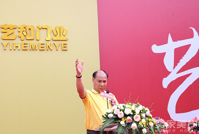 广东省门业协会钢质门专委会会长、金大田门业董事长吴奋谋上台致词:“艺和门业从曾经的代理商到今天生产基地的落成,见证了门业这一块发展的时刻。通过这几年的发展,我们可以看到艺和门业不仅在产品上的创新,更看到了艺和终端店面以及品牌整个形象的提升,是行业学习的榜样。”