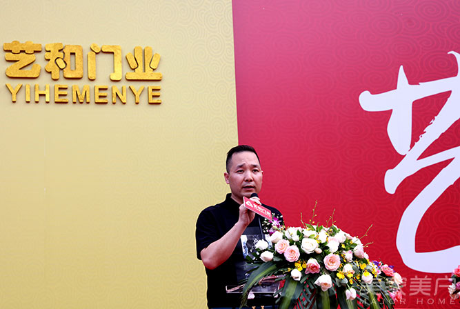 开平市水口镇人民政府副镇长李健鹏上台致辞:“艺和门业经过了18年的艰苦奋斗,成为了现代化的综合型门业制造企业之一,艺和已成为行业内的知名品牌。并代表政府将一直支持、关注艺和,同时也希望艺和门业越走越远。 ”