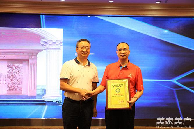 广东门业协会秘书长徐生为铜皇铜门授于“广东省门业协会副会长单位”