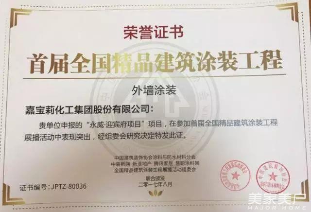 本次活动由中国建筑装饰协会作为指导单位,中国建筑装饰协会全装修产业分会、中国建筑涂装服务联盟主办。论坛中,中国建筑装饰协会涂料与防水材料分会举办更名仪式,正式更名为中国建筑装饰协会全装修产业分会。同时,还举行了中装协全装修产业分会会长、副会长就职仪式,嘉宝莉化工集团当选副会长单位,并在首届全国精品建筑涂装工程展播活动中荣获“中国建筑涂装方案优秀提供商”,申报的“永威·迎宾府”项目在首届全国精品建筑涂装工程展播活动中获得优秀奖,嘉宝莉集团副总经理、家装漆事业部总经理廖德舞荣获全装修产业分会副会长称号,以及中国建筑涂装领域功勋人物。