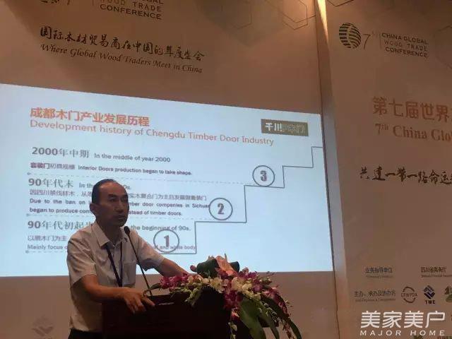 9月6日,第七届世界木材与木制品贸易大会在成都锦江宾馆胜利召开。中国木材与木制品流通协会会长刘能文、副会长兼秘书长李佳峰出席大会。四川省林业厅、商务厅、成都市和阿坝州领导在会上致辞,成都千川木业有限公司总经理鄢忠代表四川门窗行业在会上分享四川木门行业的现状和发展趋势。