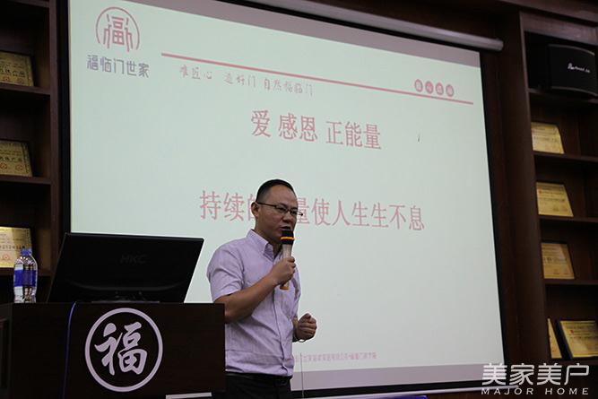 会上,福临门世家总经办张总就公司近年来的发展战略向与会人员进行了介绍。他说道,福临门世家为了不断进行技术创新,已与深圳大学建立产学研基地,并与纳米技术及应用国家工程研究中心联合开发节能门窗产品。多年来,福临门世家秉承“匠心造福”的理念,专注高端智能安防铝门窗和高端智能家居的研发生产、市场推广和品牌运营,在业内兢兢业业10余载,独创100多项国家专利。福临门世家今年所推出的恒温门窗,不仅再次用新技术为千家万户“造福”,更将引领门窗行业的技术标准再度升级。未来,福临门世家将在全国建立100家有盈利的铝门窗生产基地、成立25家工厂,力争在2020年实现上市的目标。目前,国内有超过323亿平米的建筑玻璃隔热市场,未来10年,还将以每年8%—12%的速度递增,福临门世家近年来首创恒温门窗刷新服务,潜藏着万亿元的市场。可见,市场潜力巨大。希望与会合作伙伴都能抓住这一发展的机遇,与福临门世家一起,共创美好未来。