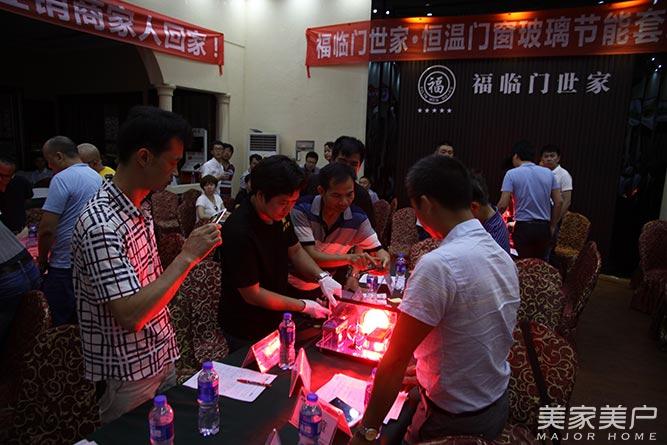 本次招商会上,福临门世家通过现场模拟实验,让与会经销商深刻体会到普通玻璃与涂了玻璃节能液玻璃之间的差距。通过模拟太阳光线的紫外线、红外线测试,根据专业的测试数据,福临门世家恒温门窗的优势显而易见。在进一步了解了福临门世家这种恒温门窗新技术及实际应用案例后,与会经销商纷纷响应,积极加盟到了这一前所未有的美好事业中来。