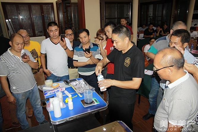 在此次招商会议期间,金牌营销顾问罗老师就福临门世家恒温门窗玻璃刷新服务的主要内容、加盟政策、实际应用案例等进行了说明。同时,福临门世家技术人员现场向与会人员进行了恒温门窗玻璃技术测试实验,并就纳米涂层的滚涂技术施工方法进行了现场演示。