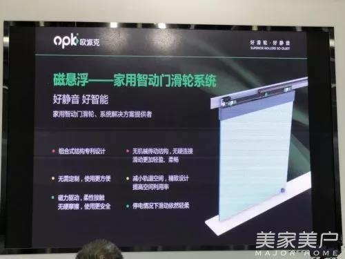欧派克方面将“磁悬浮家用智动门滑轮”称为对电动移门应用的“革命性变革”。该产品一改电动移门利用电动机带动皮带或齿轮驱动移门开合的原理,将电转换为磁动力驱动移门开合,使移门开合更静音顺滑,驱动系统的安装更方便,更节省空间,寿命更长,还最大限度降低了移门驱动系统的售后维护工作。