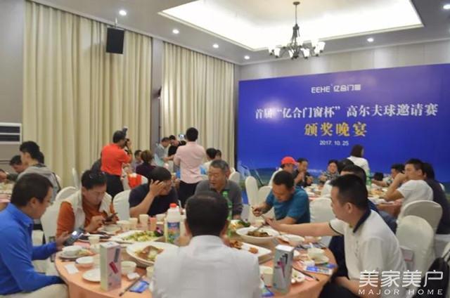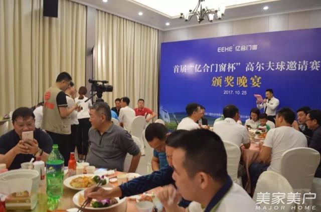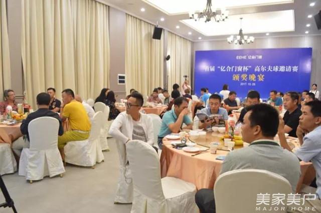 经过5个多小时的球场激战,嘉宾们齐聚亿合们参考科技园参加“亿合门窗杯”颁奖晚宴!
