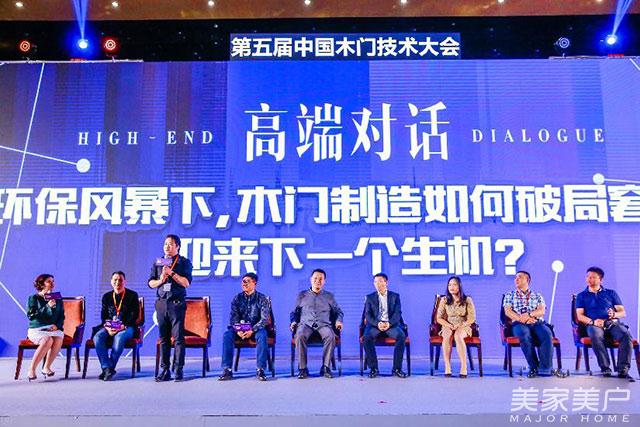 环保技术改革,是木门技术升级的一部分。高端对话环节,中国木门技术联盟秘书长石兴、玛格全屋定制唐斌、图森整体木作王维扬、TATA木门张岩、霍尔茨木门赵崇联、易佰装饰冯易进、三维家黄金丽、金田豪迈曹博士、东方百盛邵贤强就“环保风暴下,木门制造如何破局窘境迎来下一个生机?”进行了深入而广泛的探讨。