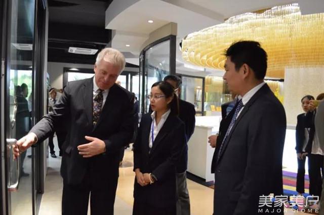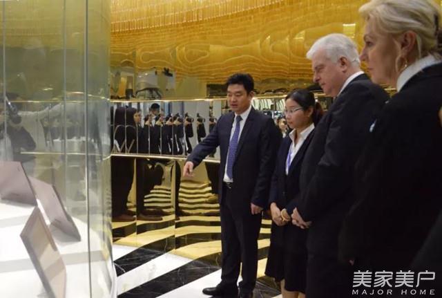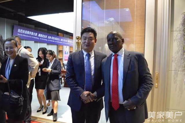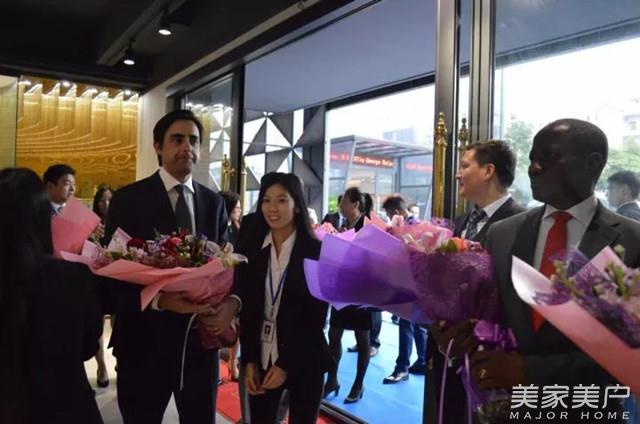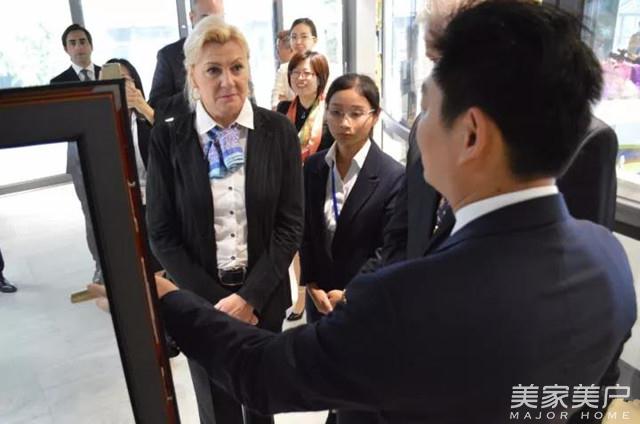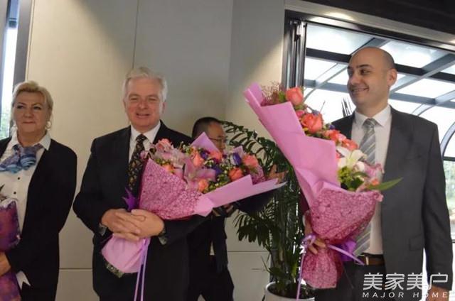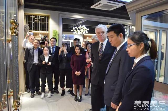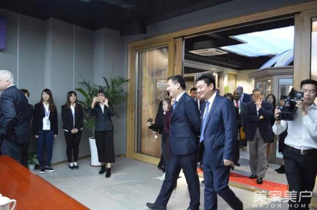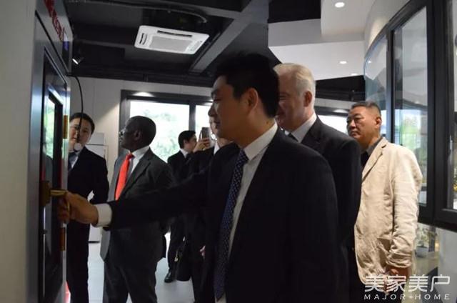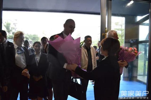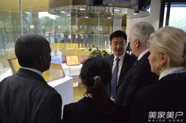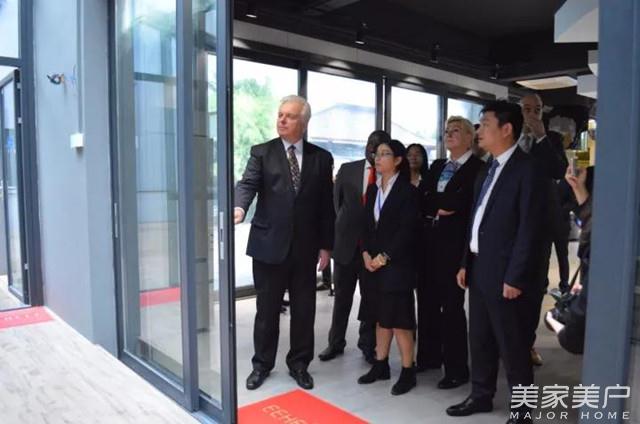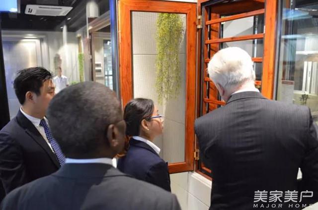 大使一行在鲜花簇拥下参观了亿合门窗展厅。亿合门窗精湛的产品设计工艺、过硬的产品质量与丰富的产品线使得大使与参赞们纷纷驻足品鉴。