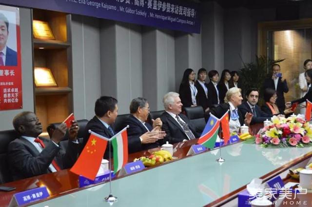 最后,大使们也纷纷交流,首先一致对亿合门窗的热情接待表示感谢,接着就“一带一路”的发展现状与未来发展规划和趋势进行了热烈的讨论。交流过程中,傅大使问及到亿合门窗将会如何应对互联网对传统实体产业的冲击。董事长曾奎先生回答说:“实体产业就好比我们的皮肤,皮之不存,毛将焉附?”这一回答赢得了在场的一阵掌声。