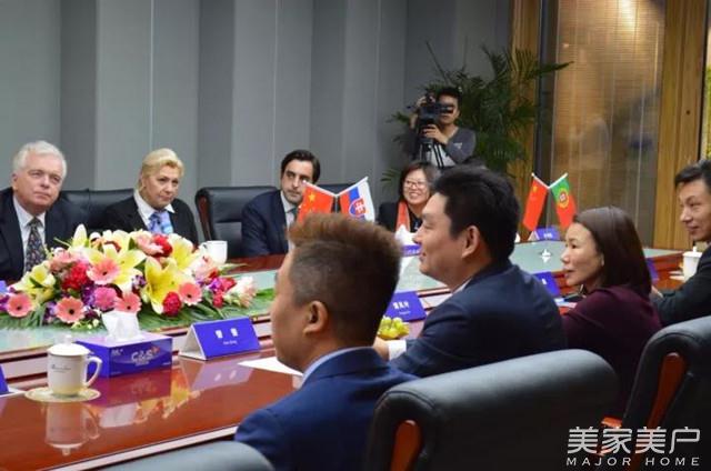 11月15日,中国前驻柬埔寨、新加坡和泰国大使傅学章,商务部中国国际经济合作学会副秘书长、对外交流中心主任戴绪龙,斯洛伐克驻华大使杜尚?贝拉及夫人,纳米比亚驻华大使埃利?乔治、葡萄牙驻华大使馆参赞康博斯、匈牙利驻华大使馆参赞高博?赛盖伊等一行莅临亿合门窗参观指导。亿合门窗董事长曾奎及夫人、亿合门窗常务副总经理胡超先生等公司领导热情接待并陪同考察。
