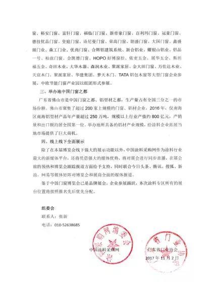 日前,涂料采购网与广东省门业协会联合发文称,为了更好地服务于广大涂料企业与下游门窗企业之间的交流与合作,中国涂料采购网联合广东省门业协会,定于2018年3月10-12日,在广东佛山举办的第九届中国门窗博览会期间,展位专门针对涂料企业设立涂料专区,以便更好地展示涂料企业产品在各类门窗产品上的应用,满足门窗企业的采购需求。