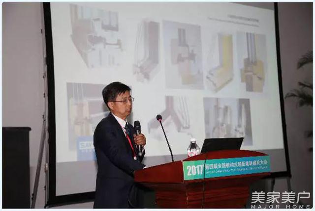 森鹰窗业项目中心副总经理邵长青,在第五分论坛“高性能外窗与遮阳技术应用”上,做“铝包木窗在被动式建筑中的应用”演讲。