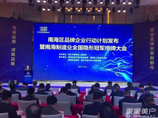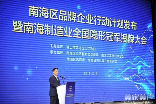 12月5日,由佛山市人民政府主办、南海区经济和科技促进局、南海区工商业联合会、南海区总商会、南方日报社珠三角新闻部承办的“南海区品牌企业行动计划发布暨南海制造业全国隐形冠军授牌大会”在佛山千灯湖酒店隆重召开。