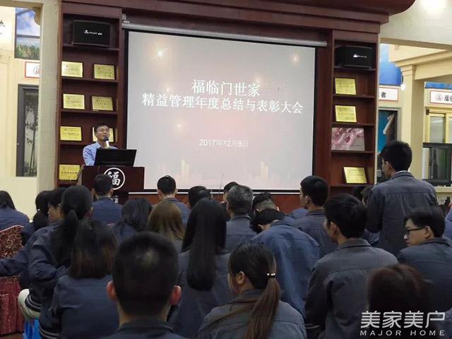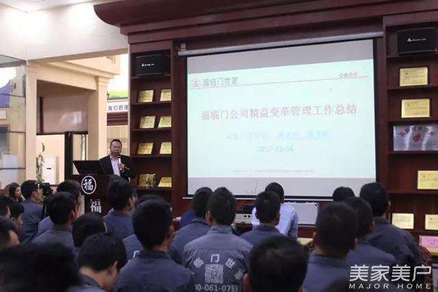 精益管理改革对福临门世家来说,是蜕变、成长的一年也是收获的一年:经营绩效、管理水平、生产数据、生产车间5S管理、技术开发、产品质量、员工素质等方面进步是非常大的。外部市场形式的变化使公司在改革中求发展,在形式变革中求稳定,现在市场上的门窗产品同质化严重,那么和同行竞争比的就是产品质量、货期和服务。各个部门主管要严格遵守精益管理改革的文件,要严抓质量问题,把产品做到极致,才能够更好的发展空间。为了达成2018年的计划和目标继续奋进,各部门团结合作、携手共进,团队同仁同心同德,2018年我们再创辉煌!