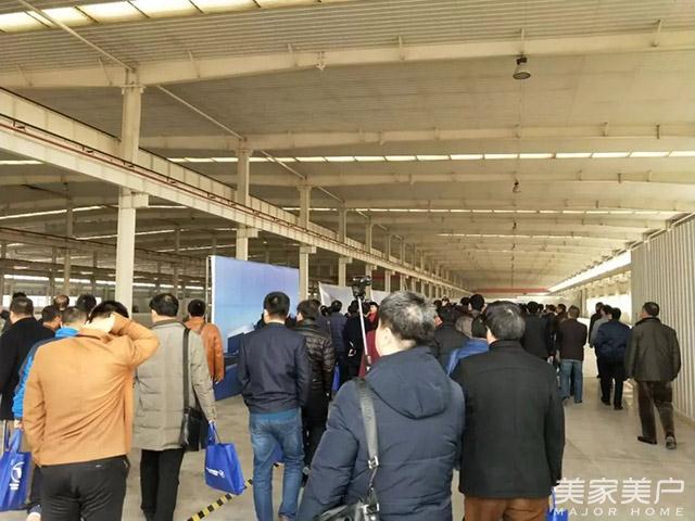 各参会代表对极景机器人智能化生产流水线产生了浓厚的兴趣,极景采用机器人智能化管理,通过使用机械手臂直接操作,下流水线的每根料都采用条形码和料车管理,一扫即可获得完整信息,保证每根型材、每根料的可追溯性。极景采用智能机器人生产线降低生产线建设成本,实现无人值守、个性定制、柔性生产,生产工序全部由机器人进行统一操作,让门窗达到高标准要求;同时减少型材在生产过程中的磕碰伤,从源头上预防质量问题的发生,智能机器人定位可以精确到毫米,不用担心门窗尺寸有误差。