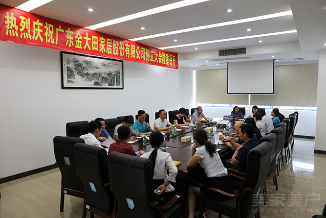 6月26日,广东金大田家居股份有限公司创立暨创新商业模式研讨会在金大田集团总部隆重召开。金大田集团所有股东参与公司创立大会。随后,《金大田创新商业模式研讨会》在二楼会议室召开。