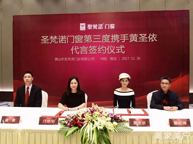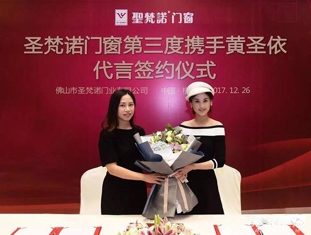 2017年12月26日,圣梵诺门窗第三度携手黄圣依形象代言签约仪式,在横店影视城贵宾楼圆满举行。