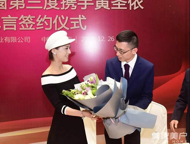 邝健华先生向圣梵诺门窗形象大使黄圣依献花