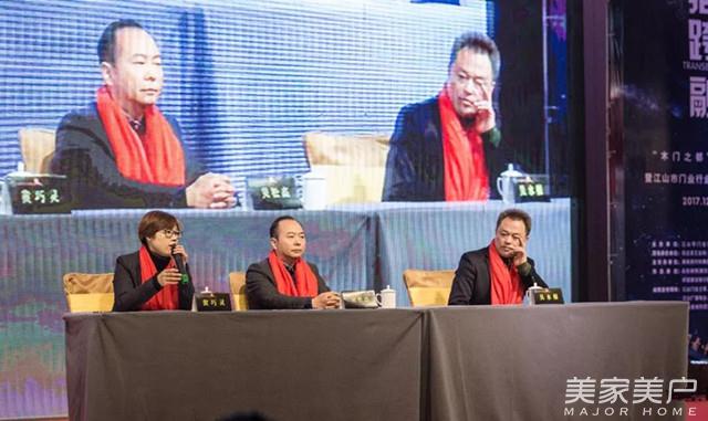 “木门之都”绿色制造产业链上下游企业主题分享环节,优秀配套企业代表负责人上台分享,为江山门业转型升级建言献策。