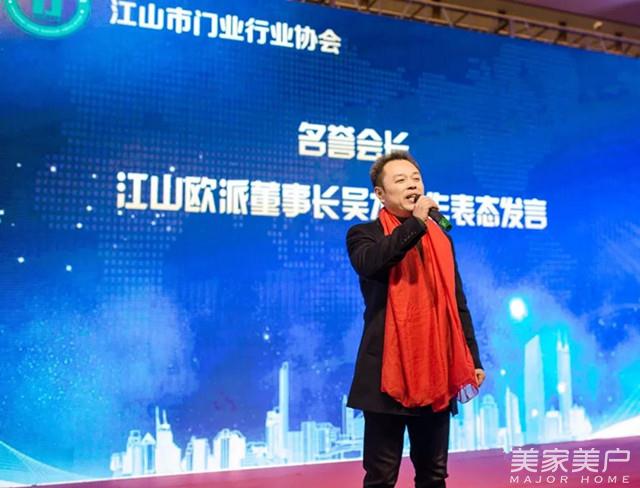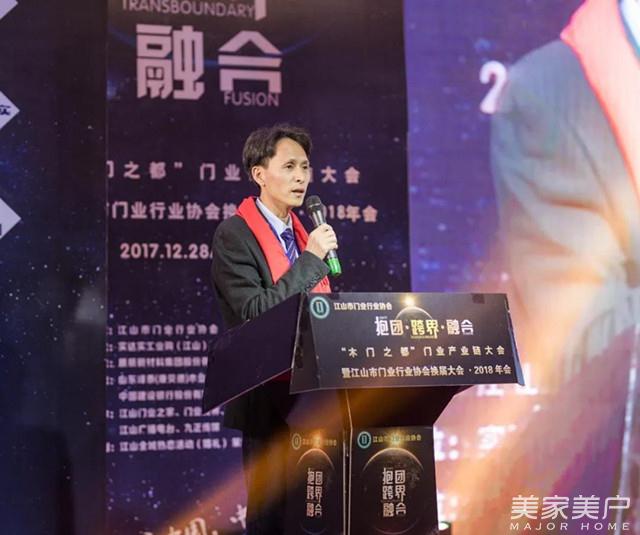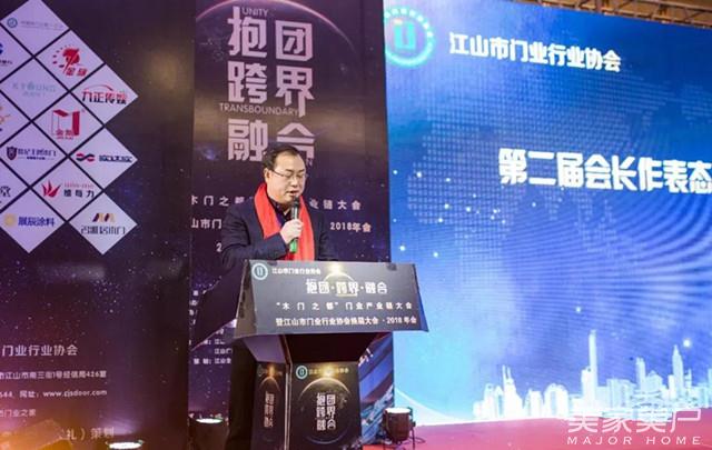 何总表示:作为新当选的会长,非常感谢各位的信任和支持。他认为江山的门业产业,抱团”是当务之急,“跨界”是大势所趋,“融合”是长远之计。只有江山门业行业抱团才能使我们,既不会为产能限制而对大客户、大订单望而却步,也不会因为规模较小而被供应商的高价格所牵制,更不会因为不良员工的恶意刁难而妥协退让。门业的发展,离不开材料供应商、设备制造商、物流服务商的直接支持,也离不开政府、各职能部门、媒体和各协会的扶持。江山门业要快速、健康地发展,就必须充分利用一切可用之资源,真正实现“融合”。协会将努力推行“三二计划”、“三规范”两大项目,让江山门业更规范、更具竞争力。对外,要打响“中国木门之都”这一金字招牌,全方位宣传与推广江山门业,努力实现“世界木门看中国,中国木门看江山”的终极目标。