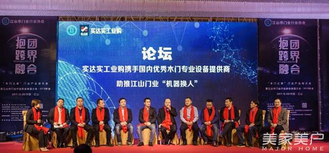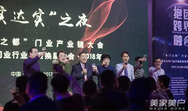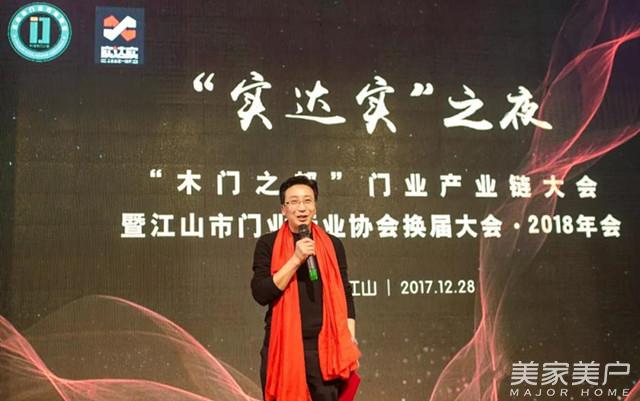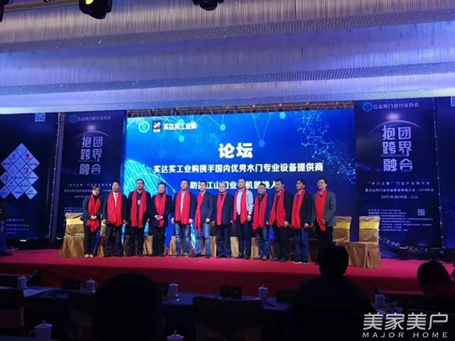 2017年12月28日下午,由实达实工业购(江山)有限公司总冠名,展辰涂料、康贝德板材、维每力文化传媒及建行江山支行等产业链上下游优秀企业倾情支持,以“抱团·跨界·融合”为主题的“木门之都”门业产业链大会暨江山市门业行业协会换届大会在君澜·江山国际度假酒店隆重召开,江山市人民政府市长、市委副书记舒畅,市经信局吴松高局长,以及国税局、财政局、环保局、商务局、科技局、市场监管局、林业局、消防大队、出入境检验检疫江山办事处、衢州海关江山联络处、经济开发区、贺村镇、峡口镇等相关部门主要领导出席会议。现场共有会员门企、产业链上下游企业以及媒体记者等300多人,共同见证这一时刻。