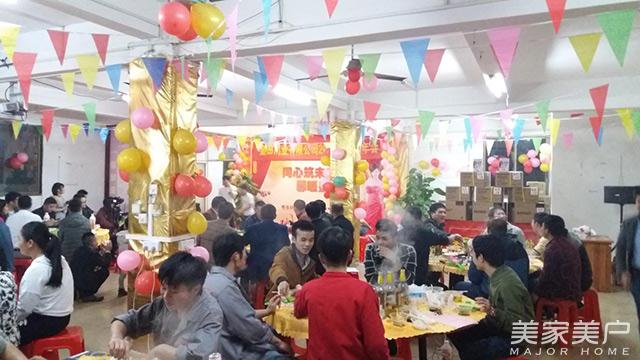 谢总致辞完毕,与皇田主要的部门领导:公司副总经理朱振宁、营销总监朱广华、行政经理杜锦超、生产主管段其林、客服主管吕慧珍、售后主管吴相冰等一同向全场人员祝酒,祝福大家新年快乐!