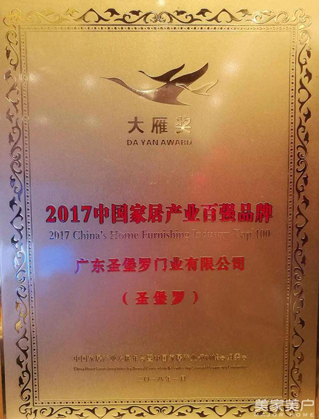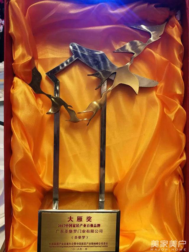 荣耀绽放!圣堡罗斩获2017年度大雁奖“中国家居产业百强品牌”