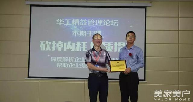 会上,华工精益管理旗下的广州市全屋咨询有限公司以“按客户的管理需求量身定制”的服务理念,并把精益管理动作在实际落实后通过软件固化的特色落地式咨询模式,当选为广东省门业协会信息化专委会副会长单位。广东福临门世家荣获了“2017年度广东门窗十大品牌”的荣誉称号,华工精益管理研究中心主任王晔老师上台代为领奖。