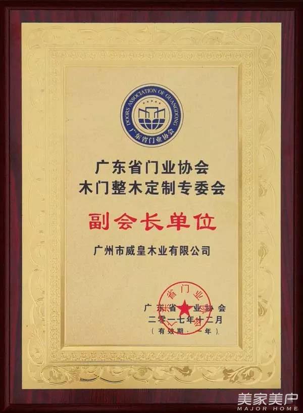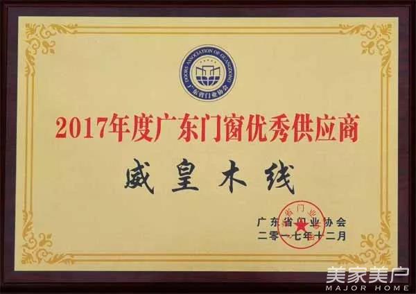 “2017年度广东优秀门窗供应商”:此项荣誉象征着消费者与行业协会对威皇木线的最大肯定,更是对威皇木线的一种激励!2017已近尾声,2018即将来临,威皇木线将秉承门窗工匠的精神,为门窗业提供更多环保实木线条,为更多的家庭缔造幸福!