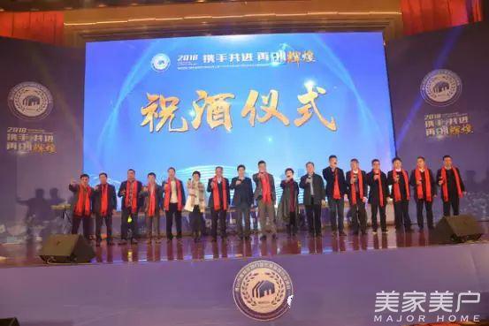 领导嘉宾上台举起酒杯,感谢出席协会2017年会的社会各界;祝贺协会在2017年所取得的成绩;预祝协会2018年“携手共进.再创辉煌”……