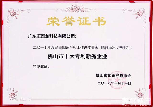 汇泰龙获“2017年度佛山市十大专利新秀企业”