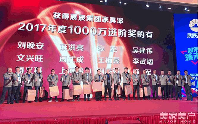 成绩的取得,离不开经销商的努力。大会上,展辰集团对在2017年做出重要贡献的经销商进行了表彰。共设置有300万进阶奖、500万进阶奖、800万进阶奖、1000万进阶奖、区域新锐奖、区域UV及水性增量冠军奖、区域增量冠军、全国销量冠军、风云人物奖、全国销售翻番奖、终身成就奖等多个奖项,为敢于拼搏的经销商加冕,向奋斗者致敬!