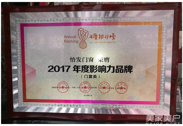 喜讯|怡发门窗荣获“2017年度影响力品牌”称号