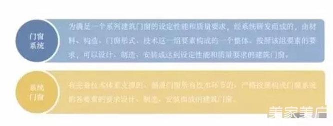 由住建部主持,中国建筑结构金属协会主编的《建筑系统门窗技术导则》中,关于系统门窗和门窗系统的定义如下: