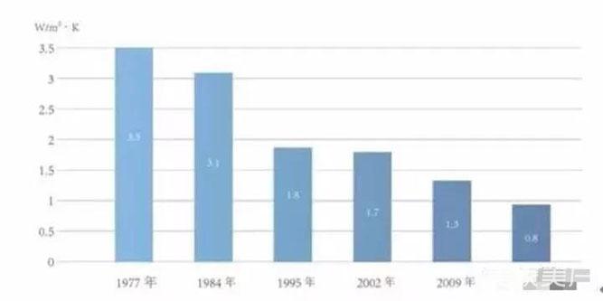 德国门窗节能要求变化历程(单位:W/m²?K):