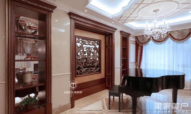欧式风格的奢华气派,以华丽的装饰、浓烈的色彩、精美的造型达到雍容华贵的装饰效果,因而受到人们的广泛欢迎,欧式居室有的不只是豪华大气,更多的是惬意和浪漫;其特点是顶、壁、门窗等装饰线角变化丰富,并融入了比如罗马柱、壁炉、卷草纹、线条优美的哑口和木格窗等非常有代表性的欧式元素。通过完美的曲线,精益求精的细节处理,带给家人不尽的舒服触感,实际上和谐就是欧式风格的最高境界。