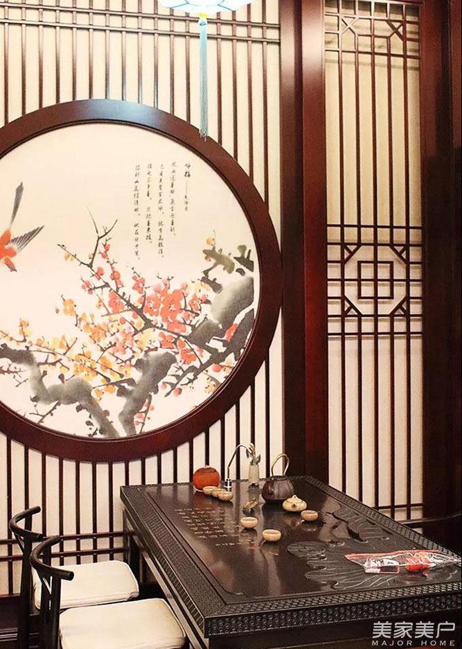 优雅庄重中式馆:以浓烈而深沉的色彩装饰,费心搜罗的瓷器古董,华丽精致,富于变化,共同沉淀着中国传统美学的审美精神。外在端庄,尽显内涵。