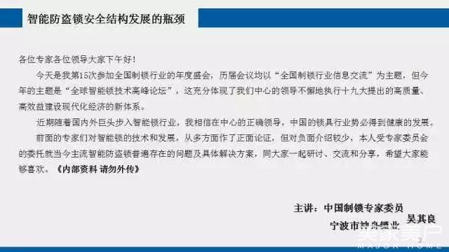 全球智能锁技术高峰论坛演讲专题||浅析《智能防盗锁安全结构发展的瓶颈》