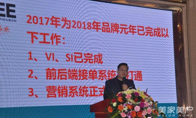 下面是我们的大家长:诺贝尼董事长蔡华宝先生,对大家做17年做整体总结与18年整体发展的报告。特别指出17年作为创新元年,我们完成产品优化、客户优化与流程再造的工作,同时定义2018年为公司品牌元年,并从营销、信息化、人才等方面做了整体规划。