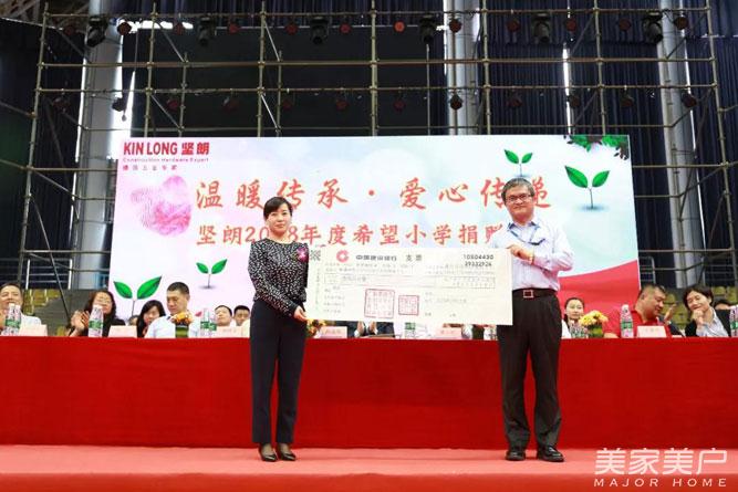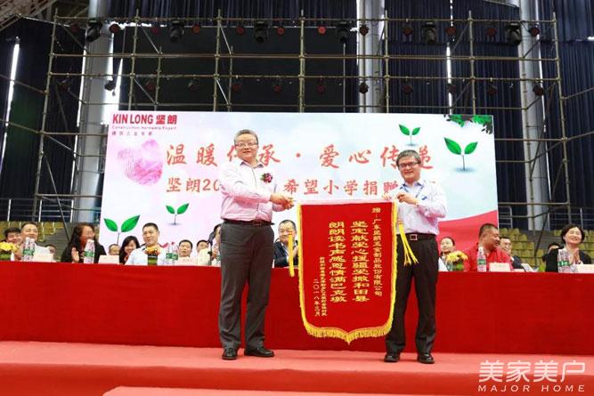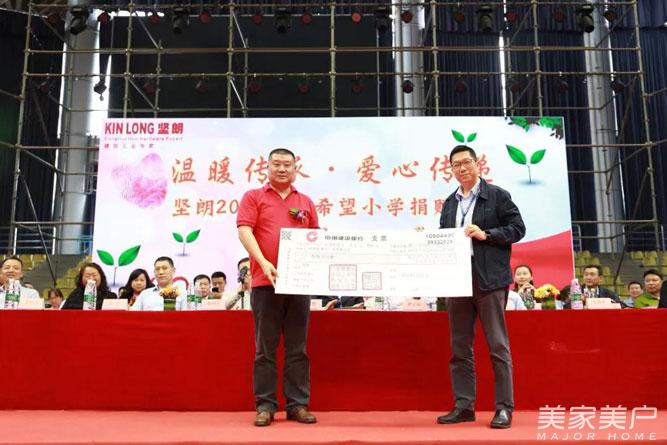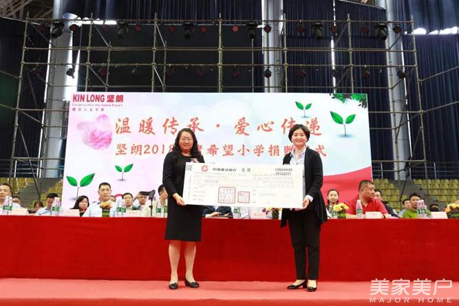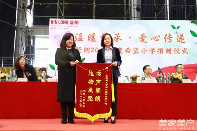 经过十五年的发展,坚朗公司现已成为拥有九千多名员工,集研发、生产和销售于一体的大型五金企业。公司在发展的同时,没有忘记这个时代所赋予的社会责任和历史使命,捐资助学,援建希望小学。坚朗人用自己的实际行动诠释着企业文化,践行一个民族企业对于社会责任的担当。坚朗人捐建的资金,将会为偏远地区的孩子们构建明媚的教室、宽阔的操场甚至启蒙他们对知识的渴望和对人生的梦想。我们以真情播撒希望,用爱心温暖2018,希望将企业责任、社会温情传递给每一个人。