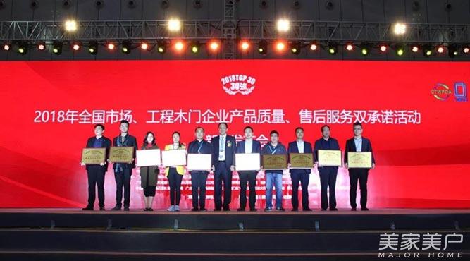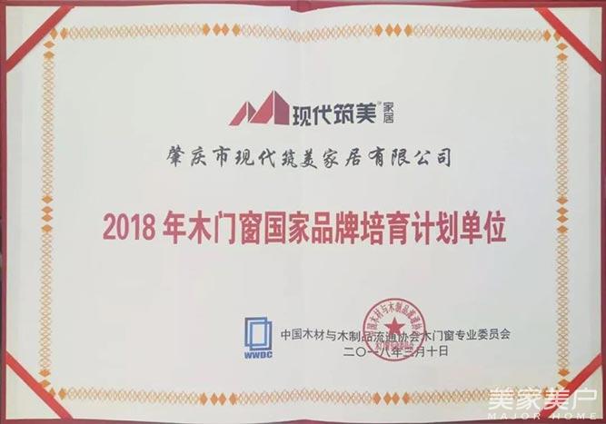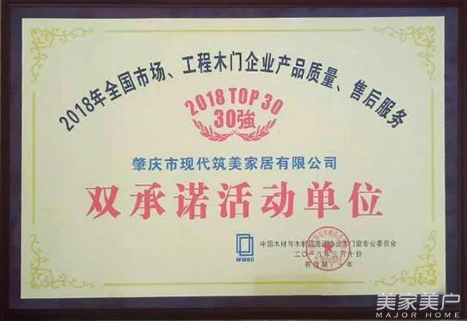 会议期间,大会隆重公布了“2018年全国市场、工程木门企业产品质量、售后服务双承诺”活动单位,整木家装领导品牌,2018年木门窗国家品牌培育计划单位等奖项。现代筑美家居凭借强大的品牌实力,以及对产品品质和环保的严苛要求,一举斩获“2018木门双承诺活动单位30强”殊荣,并成功入选“2018年木门窗国家品牌培育计划”。
