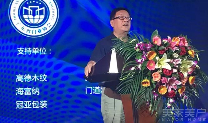 中国木材与木制品流通协会木门窗专委会会长张国林在会上致辞。他说:“看到广东门业的生机勃勃,中国门业的未来还是有希望的。通过行业优胜劣汰,行业发展会更加健康,目前有些企业抵抗风险能力还比较弱,希望广东门业企业在当前形势下要把握好方向,不能失误,要稳中求进。”