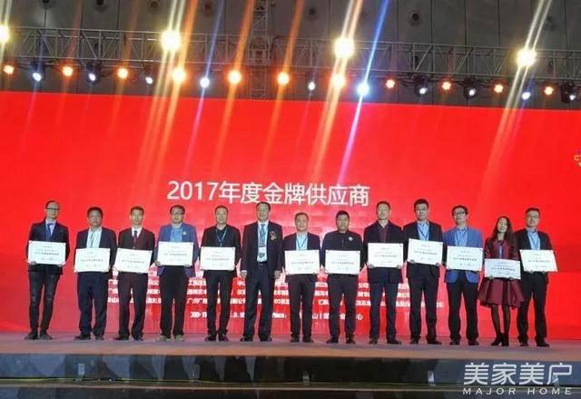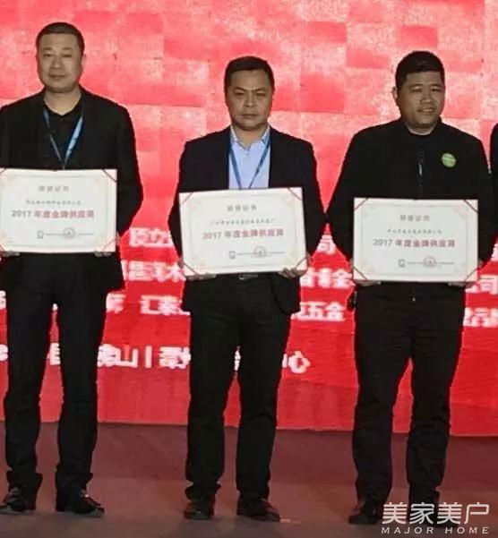 威皇木业董事长谭增茂与其他金牌供应商一同上台领奖