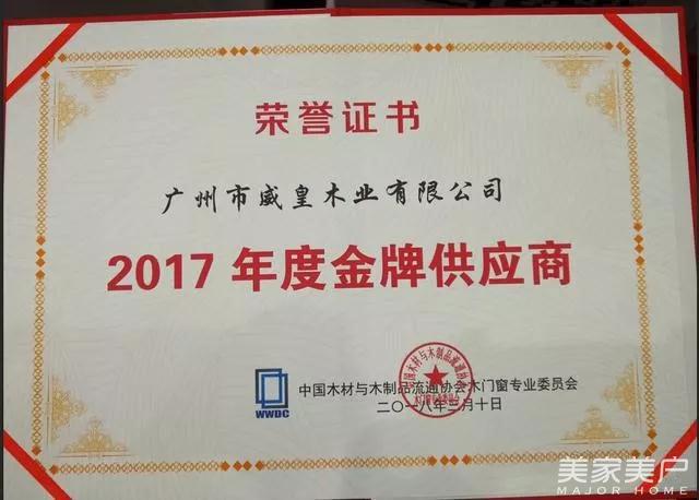 此次殊荣是对威皇木业近20年来从未停止对品质与信誉追求的肯定,更是对威皇未来发展的鼓舞和激励。中国木门窗行业 “2017年度金牌供应商”殊荣是中国木门行业内极具有权威性的一项评审活动,是木门行业门配供应商的最高荣誉称号!为行业企业品牌建设,做出了重要贡献。威皇木业获此殊荣,正表明了木门协会对企业综合实力的肯定,同时为推动中国木门行业发展再上新台阶而不懈努力。
