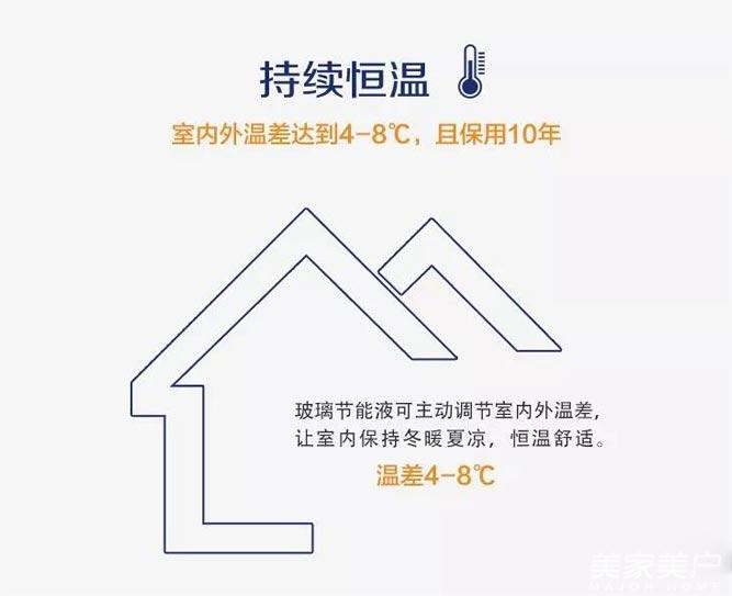 3.节能。可大大降低因辐射而造成的室内热能向室外的传递,达到理想的节能效果。由于热损失的降低,可大幅减少因采暖所消耗的燃料,从而减少有害气体的排放。恒温门窗根据环境温度变化自行调节,使空调能耗大幅降低,通过窗体的节能,至少可节约40%以上的电能。