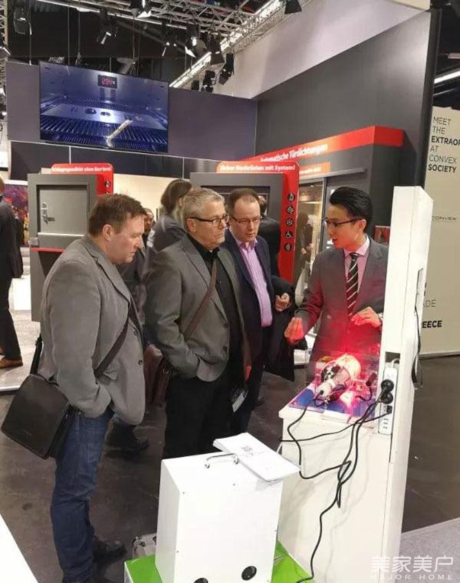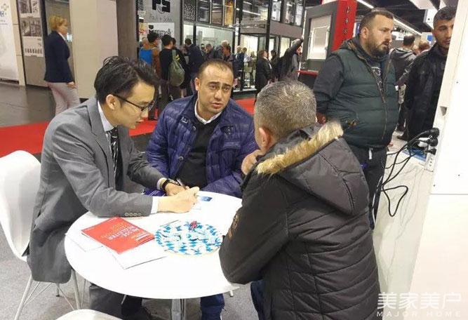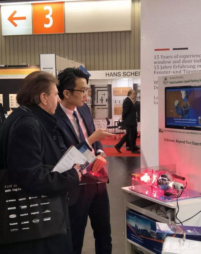 福临门世家携门窗黑科技--恒温门窗亮相纽伦堡展会,吸引众多观展商驻足观看,了解恒温门窗的功能和特性。四天的展会期间,外贸部胡经理通过用测试仪测试恒温门窗隔热隔紫外的效果,用数据更直观的给观展商看到测试的结果是真实的,更让观展商信服。观展商们被门窗黑科技的隔热隔紫外线达到90%以上的数据震惊了,向胡经理洽谈合作,了解加盟事宜。