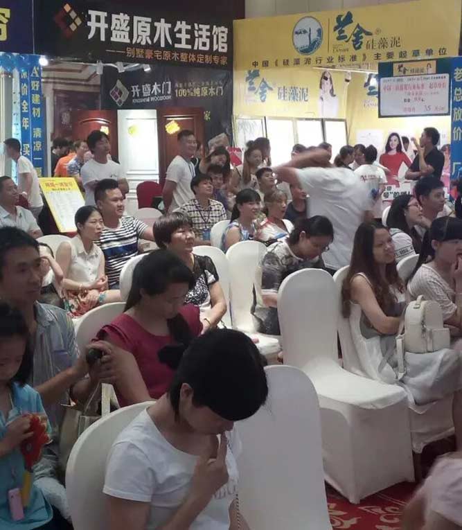 活动现场,大家热情高涨,为厂家开出的巨大优惠价振奋不已。在开盛展位前,前来咨询的消费者络绎不绝,挤满了前来咨询的客户。有的咨询此次活动的巨大优惠,有的咨询查看着产品的质量,有的向工作人员详细询问开盛木门的制作工艺…